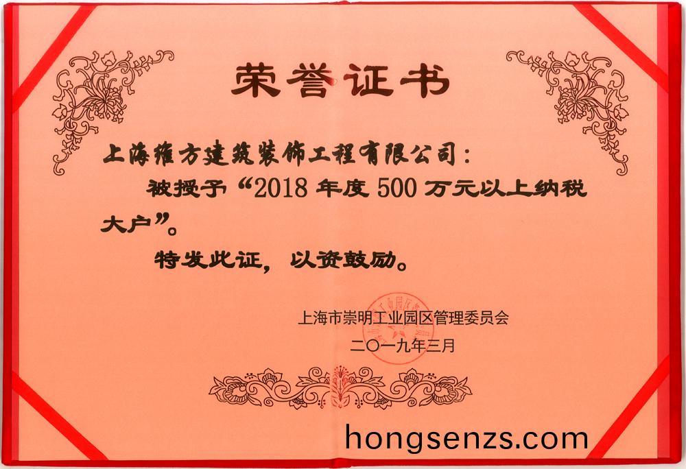 公司穫2018年度崇明工業(yè)園區(qū)納稅大戶榮譽(yù)稱號