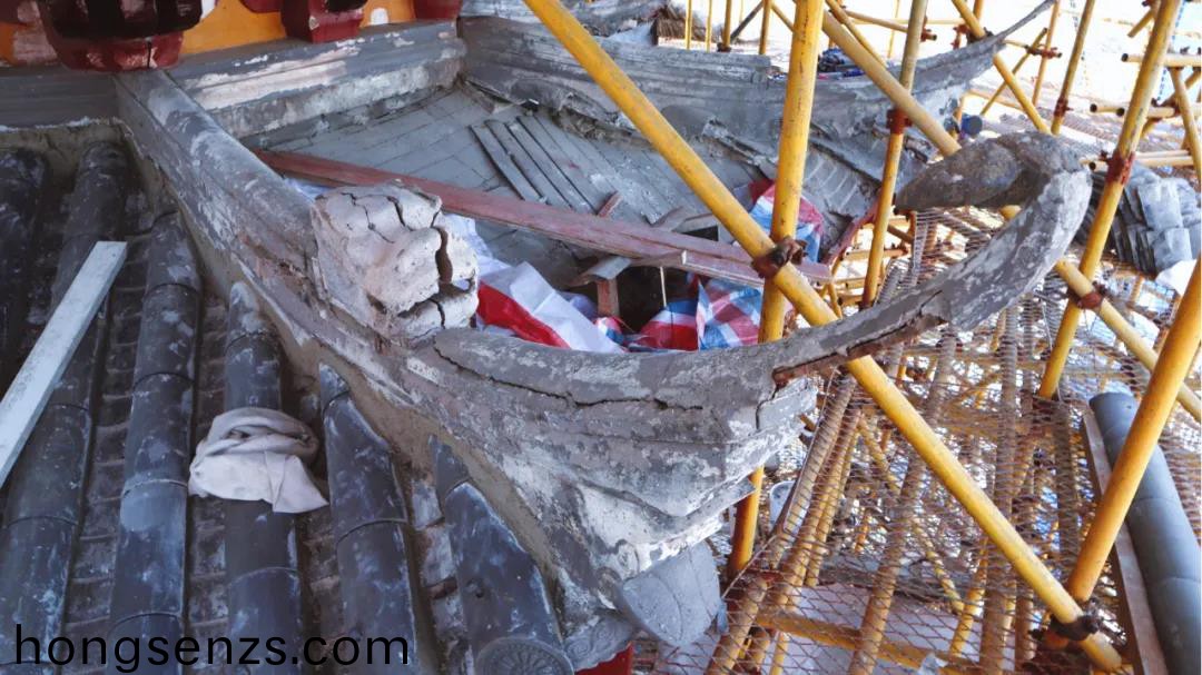 保養(yǎng)維護前,屋脊獸傷痕纍纍